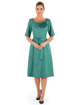 Sukienka rozkloszowana z wiskozy, midi do kolan – modna sukienka na letnie wesele 40062