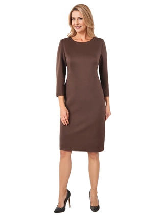 Liczba produktów: 429Sukienka damska midi brązowa – prosta sukienka z dzianiny na jesień, zimę z rękawem 3/4 40664