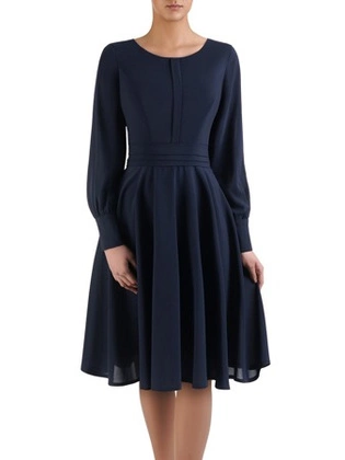 Elegancka sukienka dwurzędowa 18379, rozkloszowana kreacja w granatowym kolorze
