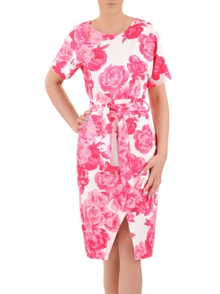 Sukienka damska 16811, wyszczuplająca kreacja w kwiaty.