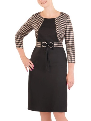 Elegancka sukienka z modną pepitką i dodatkiem ekologicznej skóry 31297