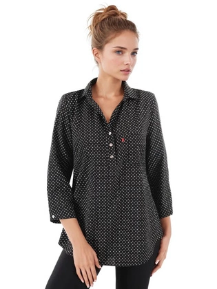 Liczba produktów: 5956Koszula damska w groszki, czarna bluzka koszulowa z kieszonką 38049
