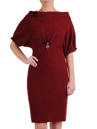 Liczba produktów: 6741Bordowa sukienka z fantazyjnymi rękawami, elegancka kreacja z wełny 19065