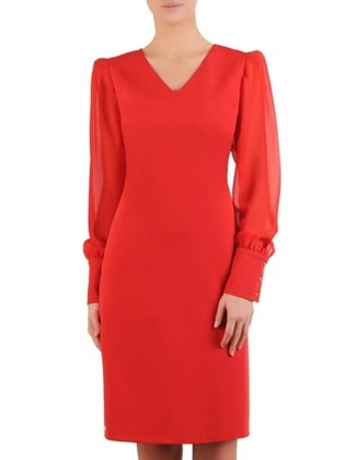 Liczba produktów: 6534Czerwona sukienka z tkaniny, kreacja z bufiastymi rękawami 24248