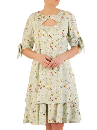 Luźna sukienka z ozdobnymi falbankami i wiązaną stójką 30772