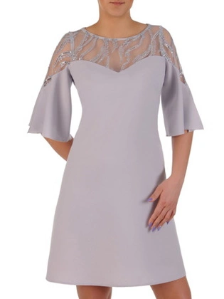 Liczba produktów: 3438Popielata sukienka z koronkowym karczkiem, wizytowa kreacja w modnym fasonie 20177