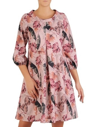 Rozkloszowana sukienka z kołnierzem, kreacja w kwiaty 34243