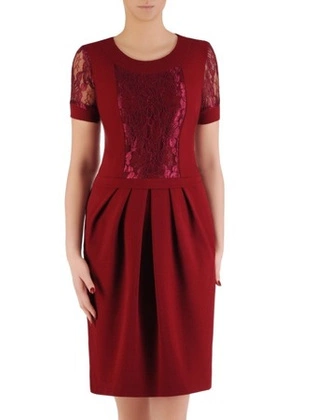 Liczba produktów: 3366Bordowa sukienka z modnymi plisami i koronkowym wykończeniem 19557