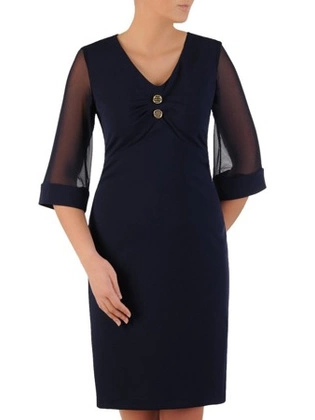 Sukienka z tiulowymi wstawkami, granatowa kreacja wyszczuplająca 18952