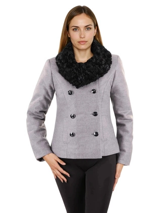 Liczba produktów: 3434Kurtka zimowa damska, szara krótka wełniana kurtka z ozdobnym kominem, duże rozmiary 37161