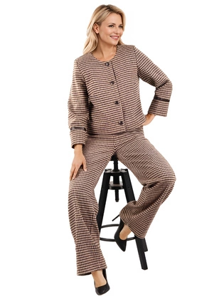 Spodnie damskie z domieszką wełny – proste beżowe spodnie wizytowe z kieszeniami, kantem, model plus size 36866