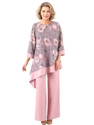 Liczba produktów: 3366Elegancki komplet damski na wesele, komunię, wyszczuplająca tunika z luźnymi spodniami 39802