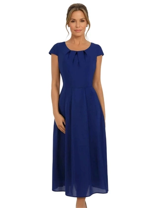 Rozkloszowana sukienka Izaura II, kreacja w kolorze chabrowym.
