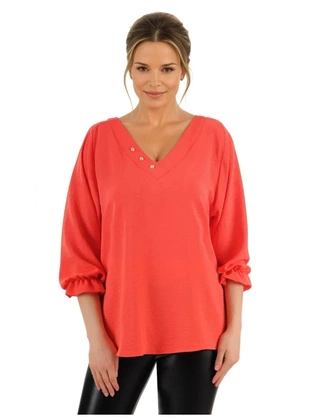 Elegancka bluzka damska z ozdobnymi guzikami przy dekolcie 35755