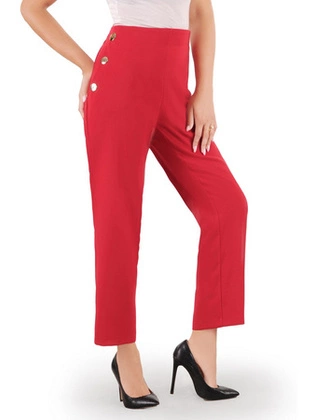 Liczba produktów: 1656Spodnie damskie, czerwone, proste spodnie z wiskozy na gumce z ozdobnymi guzikami przy kieszeniach, duże rozmiary 36534