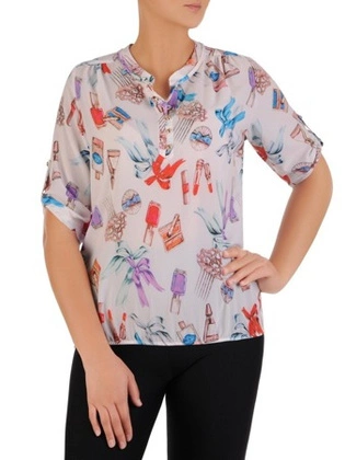 Elegancka bluzka damska z ozdobnie wiązaną stójką 34966