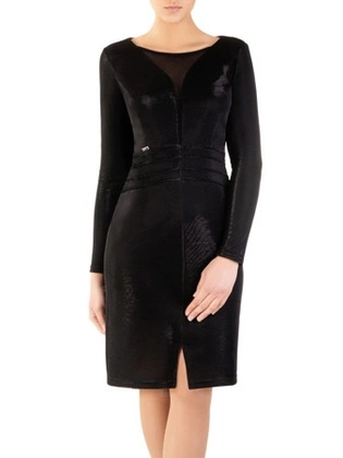 Liczba produktów: 636Połyskująca sukienka z ozdobną, tiulową wstawką 14411, nowoczesna mała czarna.
