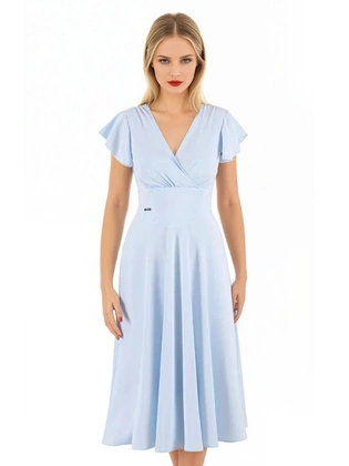 Niebieska sukienka wizytowa z efektowną baskinką 35883