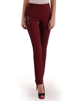 Liczba produktów: 79Spodnie damskie z wysokim stanem, dzianinowe, bordowe spodnie z ozdobnymi suwakami 13979