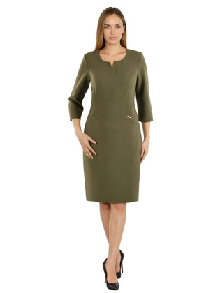 Liczba produktów: 140Modna sukienka wizytowa midi z dzianiny – zielona sukienka wyjściowa z ozdobnym dekoltem i rękawem 3/4 40825