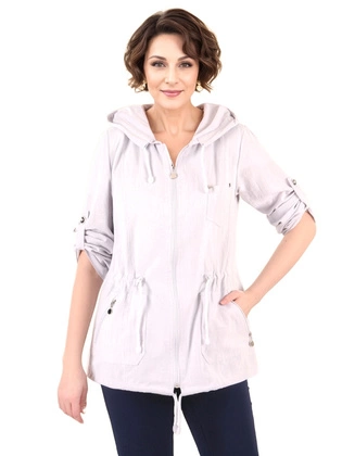 Liczba produktów: 75Kurtka damska przejściowa, szara bawełniana kurtka z troczkami, kaptur, kieszenie 39707