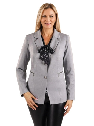 Liczba produktów: 76Żakiet damski szary melanż z zamkami – klasyczny fason z kołnierzem 40473