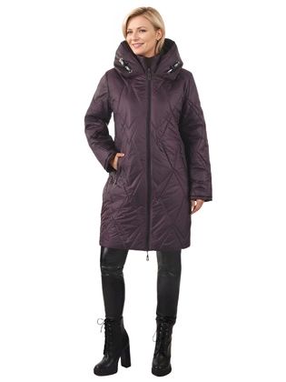 Kurtka damska zimowa, bordowa kurtka pikowana z kapturem na zimę, duże rozmiary 38692