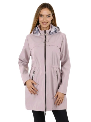 Kurtka damska przejściowa, pudrowa, pikowana kurtka z wyszczuplającymi wstawkami, odpinany kaptur, boczne kieszenie 33074