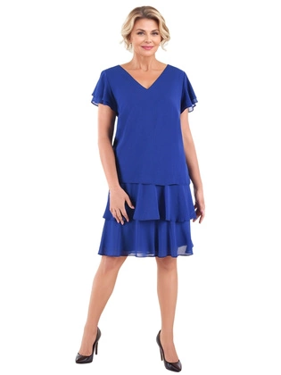 Sukienka na wesele, komunię, elegancka kreacja wyszczuplająca z błękitnego szyfonu 39358