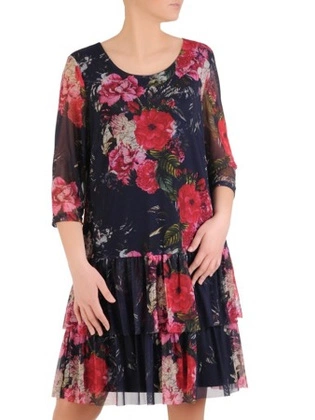 Wyjściowa sukienka z falbanami, zwiewna kreacja w oryginalnym wzorze 26758