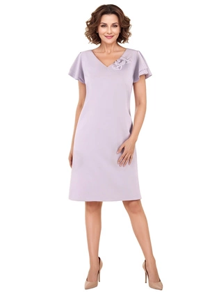Sukienka na wesele, komunię, fioletowa kreacja w wyszczuplającym fasonie 39355