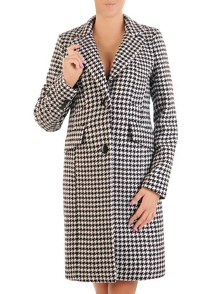 Płaszcz damski zimowy, klasyczny czarny płaszcz ze stójką zapinany na guziki 35796