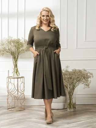 Liczba produktów: 134Rozkloszowana sukienka z tkaniny bawełnianej w kolorze oliwkowym 31413