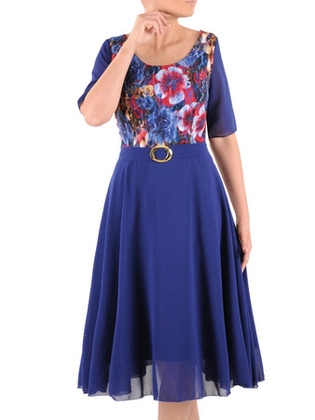 Elegancka sukienka damska z szyfonową górą i wiązaniem 29861