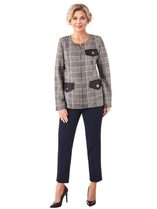 Liczba produktów: 225Elegancki żakiet damski w kratę zapinany na suwak – stylowa marynarka do pracy i na co dzień 39828