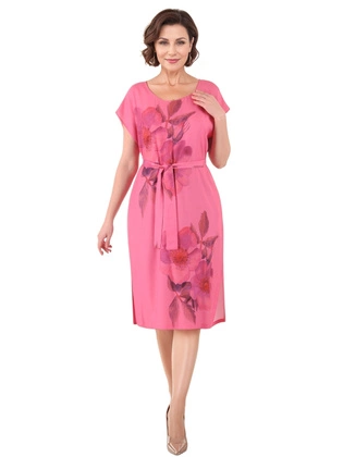 Sukienka wyszczuplająca, dwuwarstwowa szyfonowa kreacja na lato w kolorze fuksji 38349
