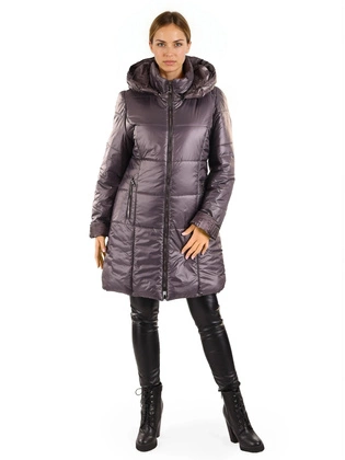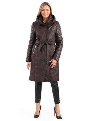 Liczba produktów: 111Długa brązowa kurtka damska pikowana z kapturem – klasyczna kurtka zimowa z zamkiem i stójką 40647