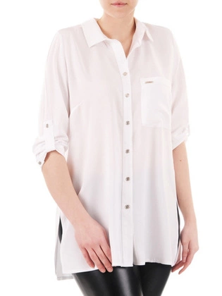Kreszowana biała koszula damska plus size z podwijanymi rękawami 38874