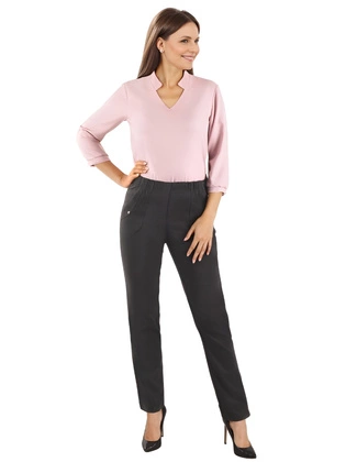 Spodnie damskie, grafitowe proste spodnie z gumką w pasie, tylnymi kieszeniami, duże rozmiary 34868