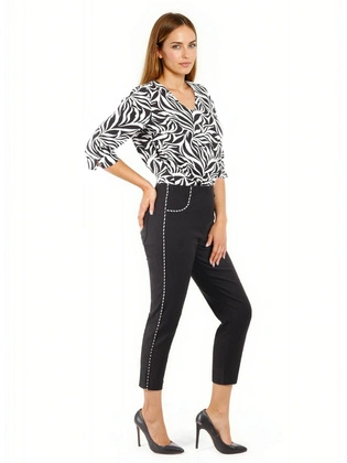 Liczba produktów: 128Spodnie damskie, czarne dopasowane spodnie rybaczki z ozdobnymi zamkami, duże rozmiary 34874