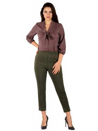 Spodnie damskie, zielone spodnie z gumką w pasie, tylnymi kieszeniami, duże rozmiary 35151