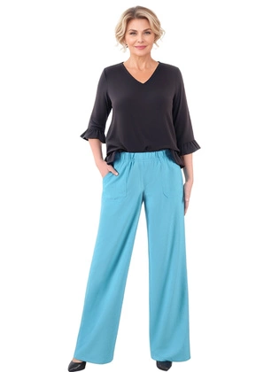 Liczba produktów: 128Szerokie turkusowe spodnie plus size – przewiewne i modne spodnie na wiosnę i lato 39808