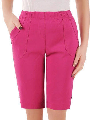 Liczba produktów: 127Szorty damskie, amarantowe szorty z wiskozy z gumką w pasie, przednimi kieszeniami, duże rozmiary 37563
