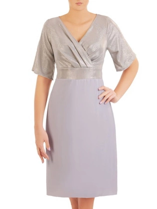 Wieczorowa sukienka z łączonych materiałów, kreacja kopertowa 32040