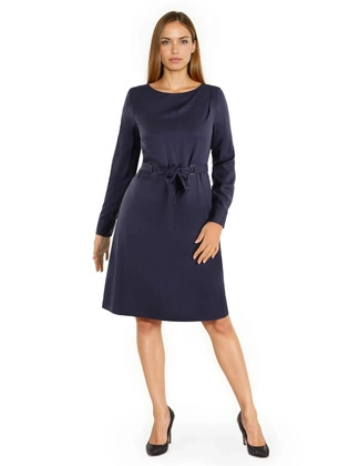 Liczba produktów: 49Wyszczuplająca sukienka granatowa z Lyocellu – midi z paskiem i dekoltem łódka, idealna na wyjątkowe okazje 40692