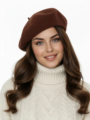 Wełniany beret damski brązowy – komfort i fason dla realnej sylwetki