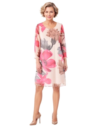 Sukienka z szyfonu, beżowa kreacja w luźnym fasonie 29034