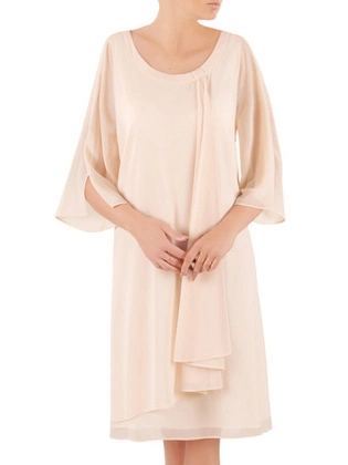 Beżowa sukienka wizytowa z tkaniny i koronki 30194