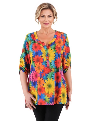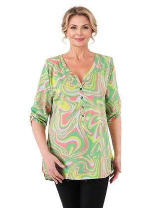Elegancka bluzka damska z ozdobnymi guzikami przy dekolcie 35754