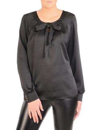 Beżowa bluzka z ozdobnym marszczeniem przy dekolcie 31859